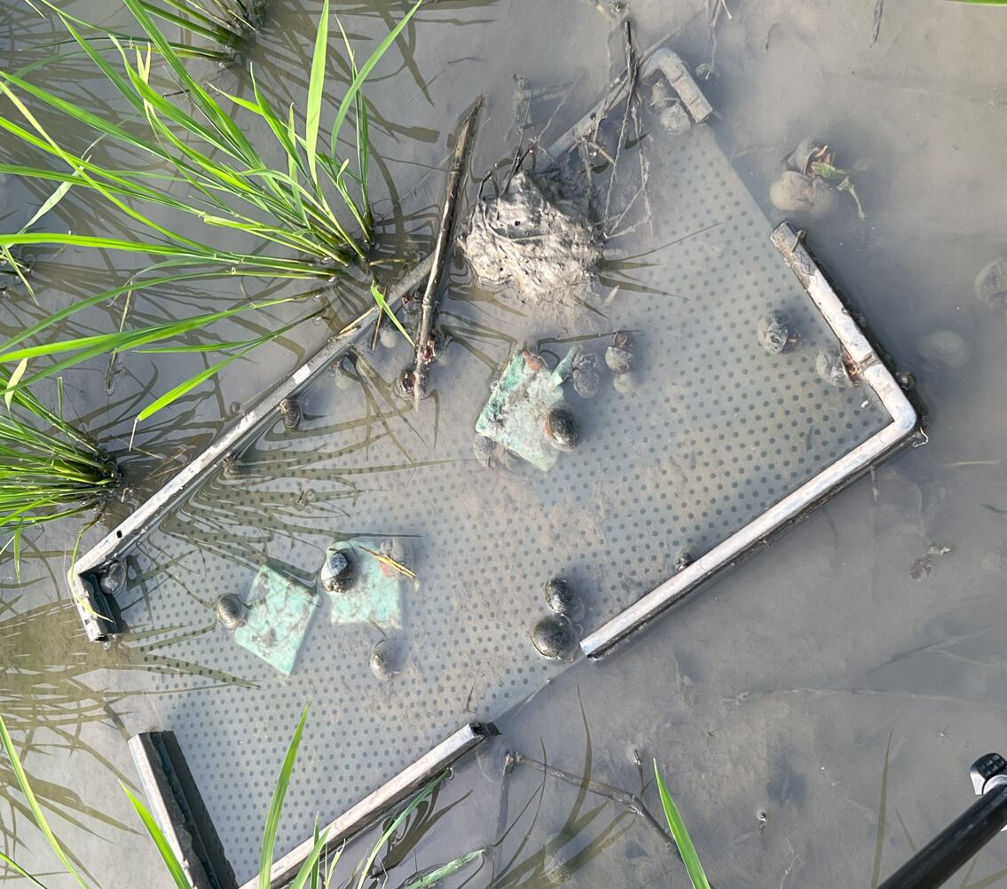 設置後数時間でジャンボタニシが集まり始めます。